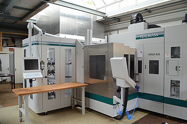 Flexible Fünf-Achs-Fertigungszelle mit Robotsystem und Regalmagazin
